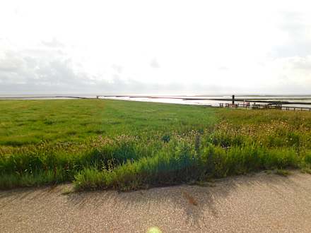 Blick von der Liegewiese in Richtung Badestelle / Wattenmeer über die Salzwiesen.