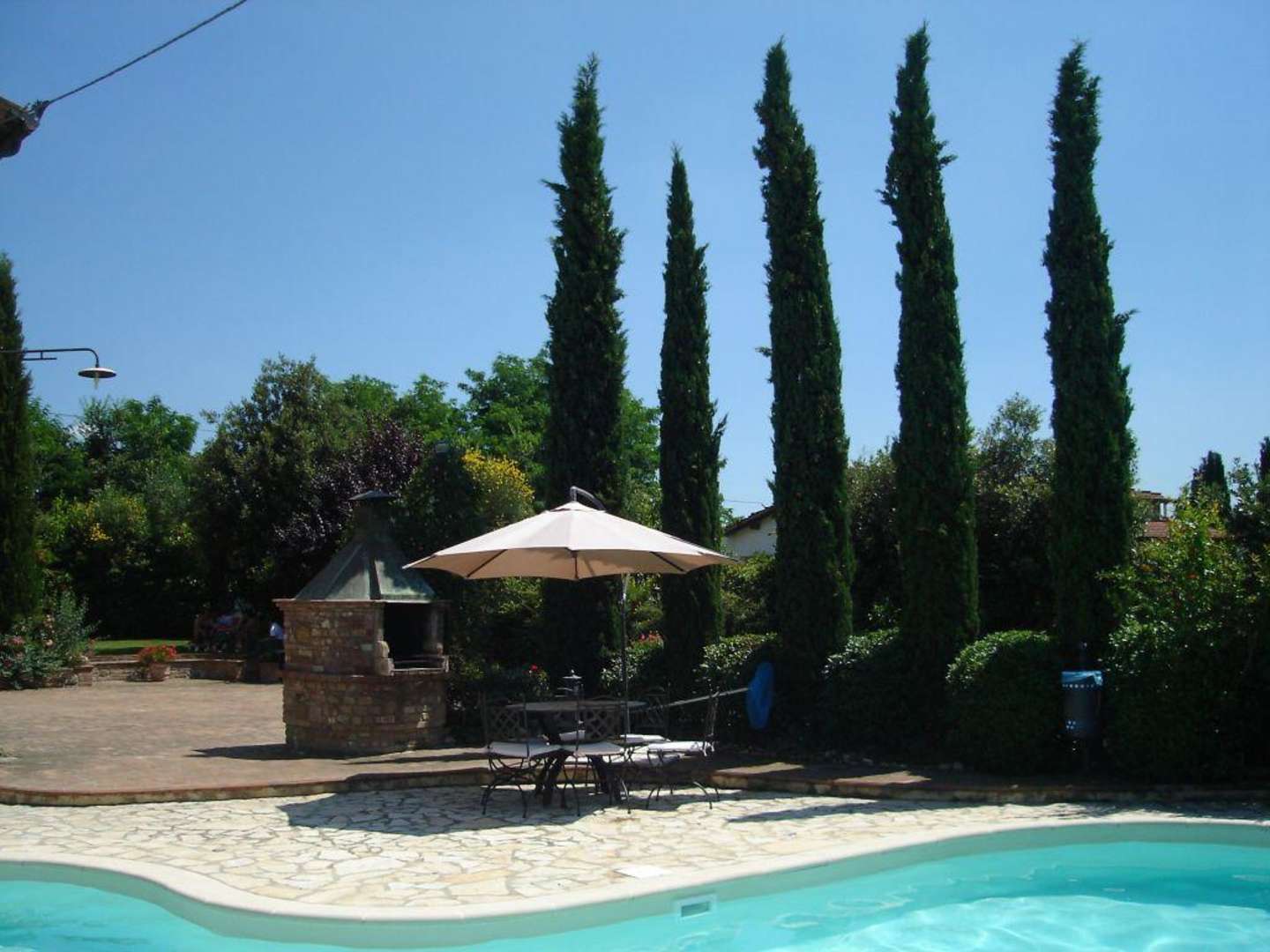 Grill und Essplatzhinter den Zyprissen verbirgt sich der Zugang zum Haus. Der Tisch eignet sich bis zu 8 Personen ohne Probleme!