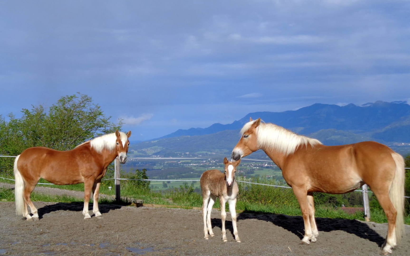 Pferde in der Abendsonne mit Blick ins Inntal