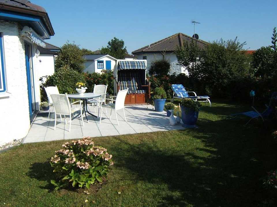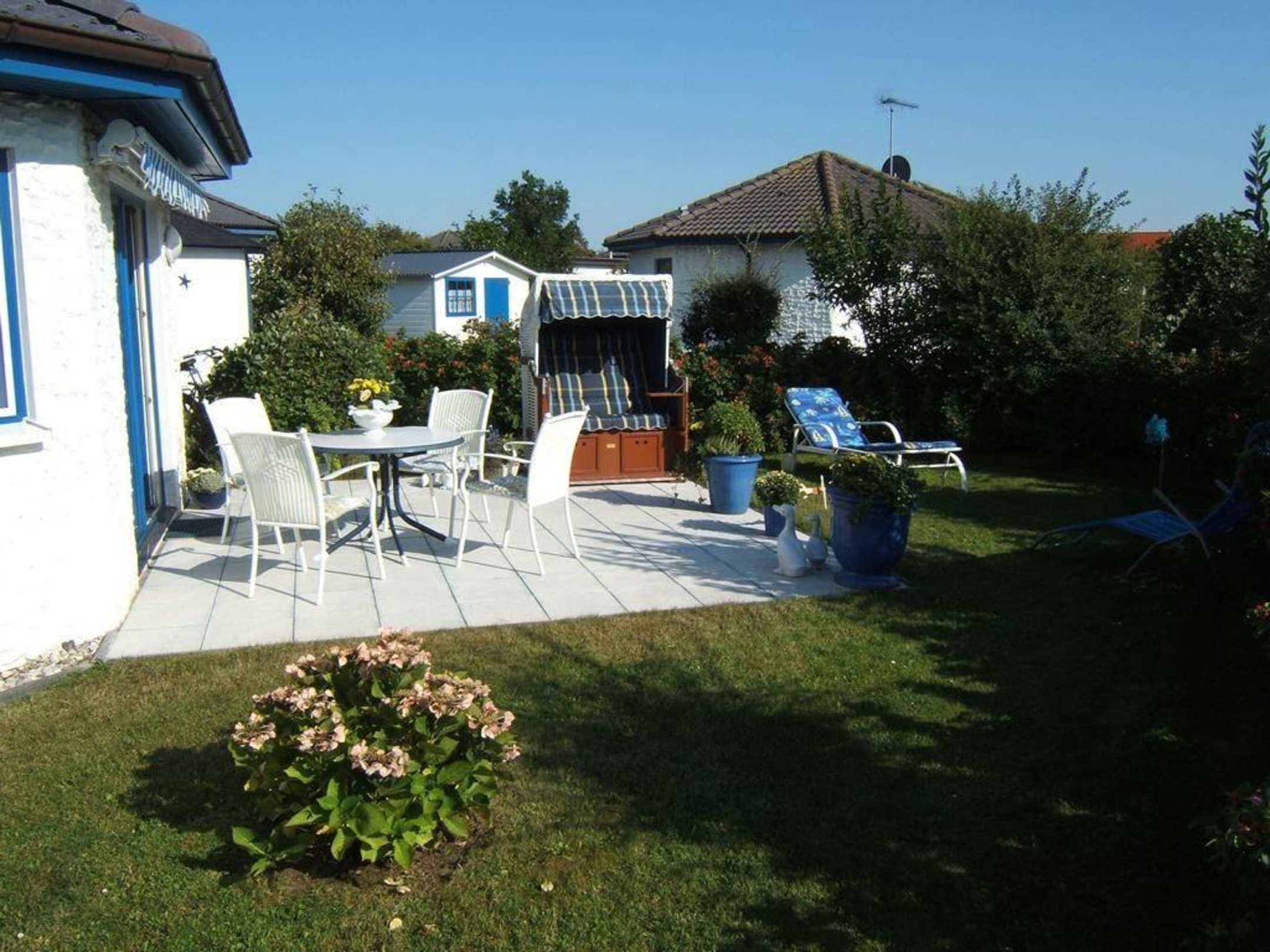 Terrasse mit Strandkorb und Sonnenliege