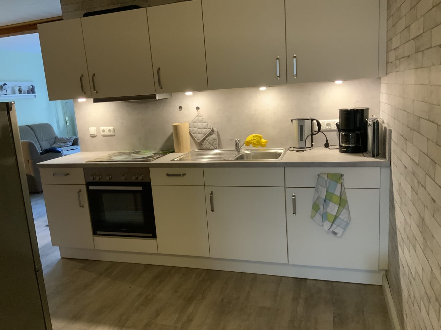 eine gut ausgestattettete Küchenzeile....
