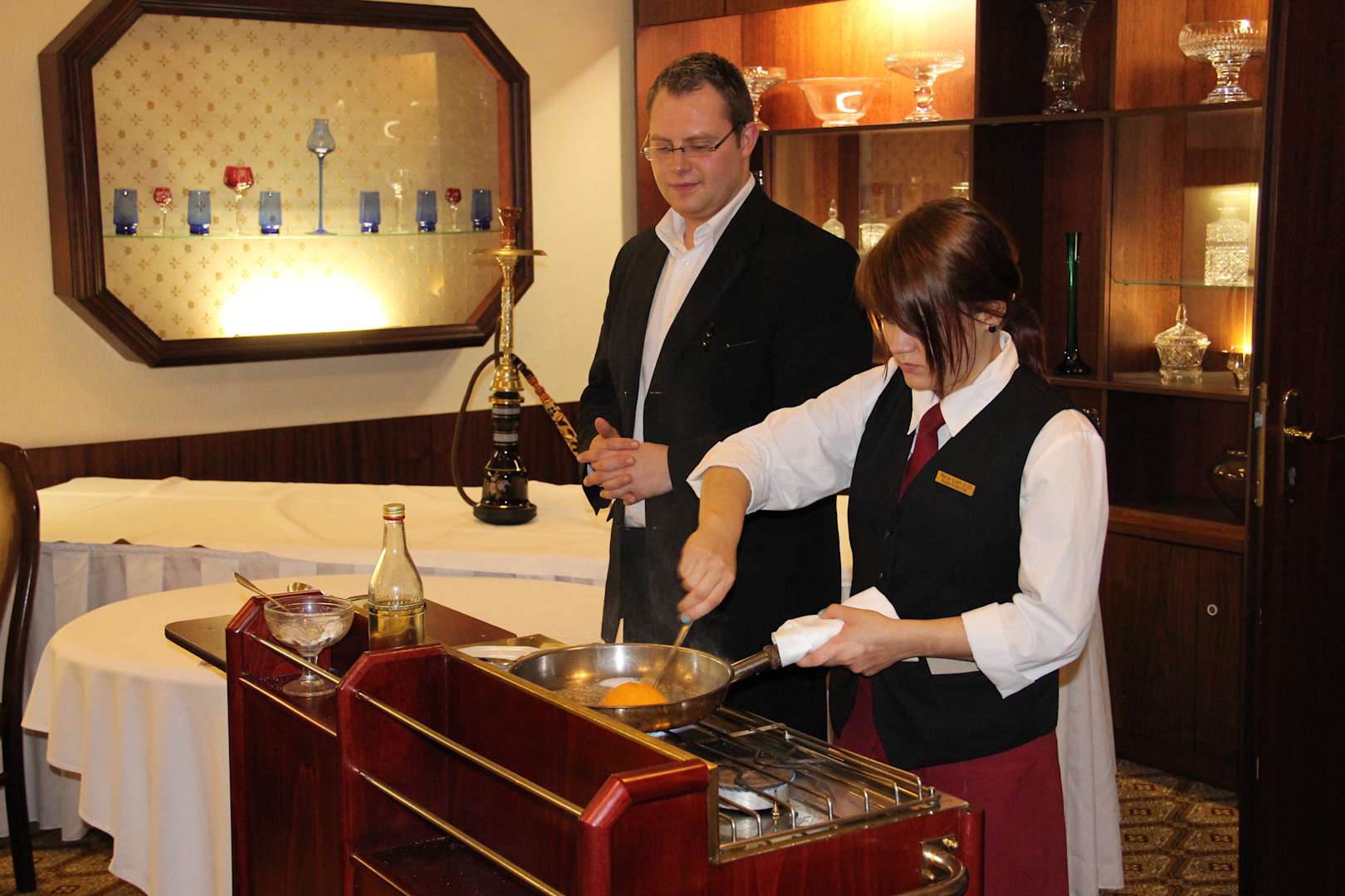 Hier wird das leckere Crepe-Suzette angerichtet.
