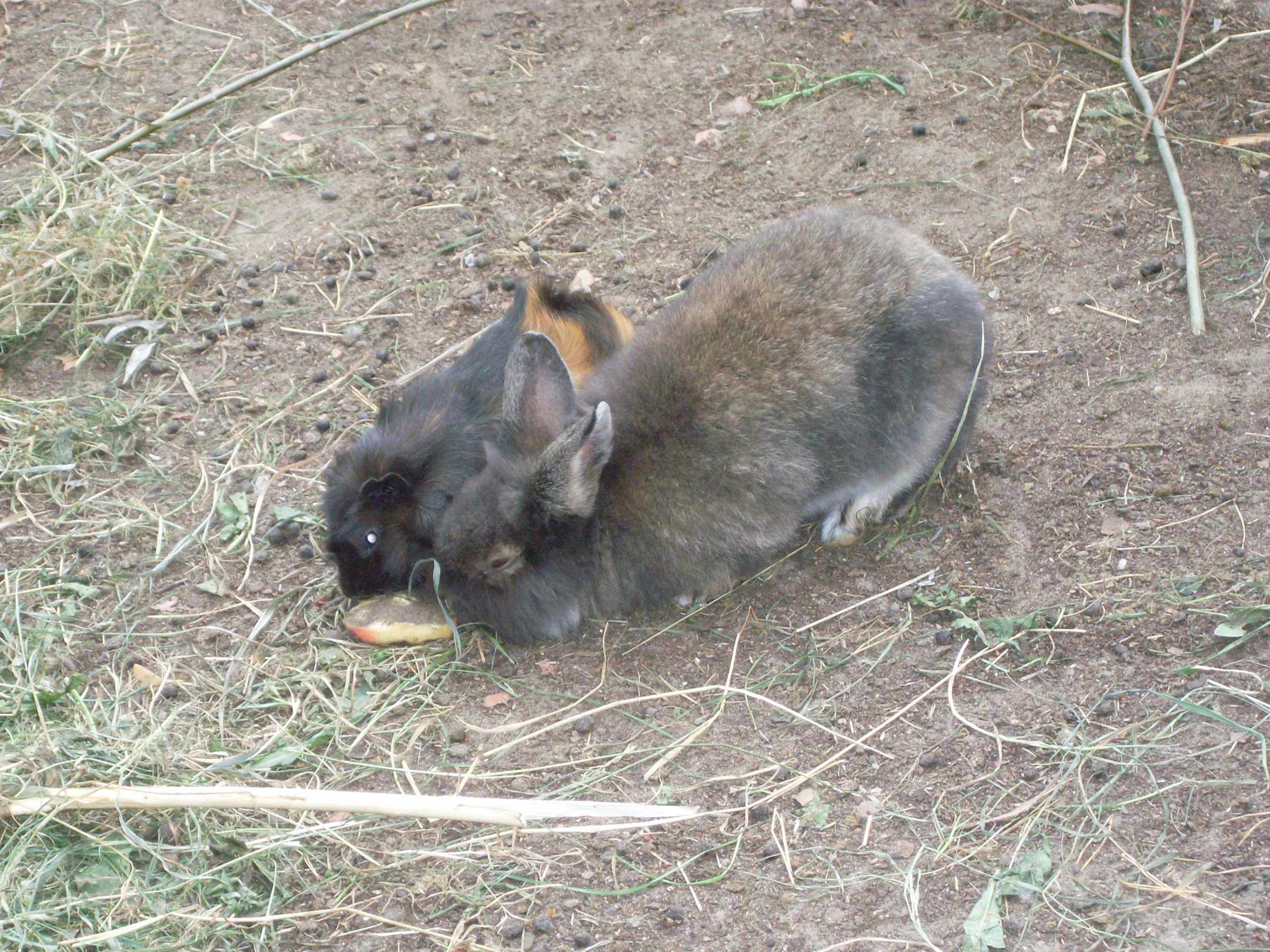 Eines der 5 Meerschweinchen und eines der 4 Kaninchen