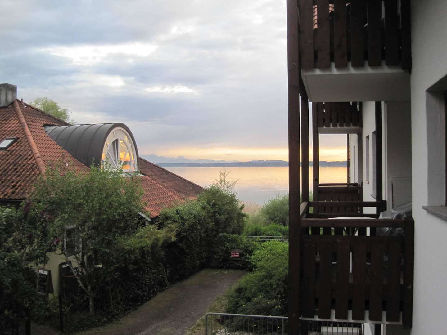 Blick vom Balkon (das Gebäude links ist ein Café)
