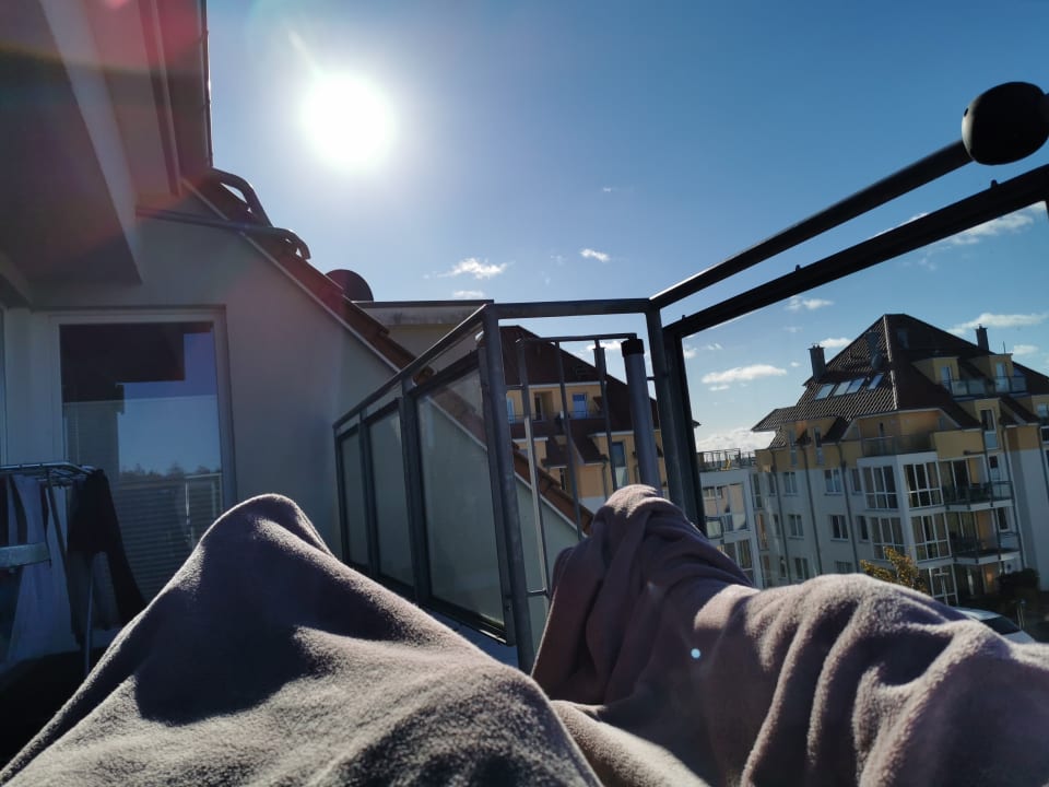 AußenansichtDachterasse. Stühle Tische und zwei Liegen laden zum Verweilen ein. Auch ein Elektrogrill ist verhanden.