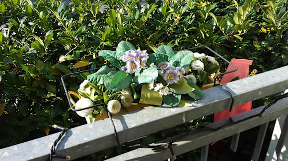 Terrasse: künstliche Blumen im "Blumenkasten"