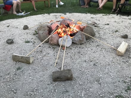 Lagerfeuer mit allen Gästen und Gastgeber