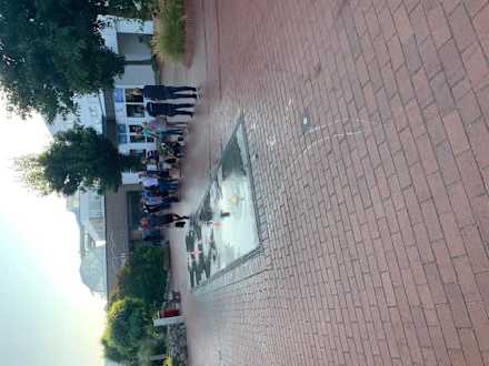 Schlange stehen beim Essen. Das ist nur der kleine Teil draußen, drinnen geht die schlange weiter, das Restaurant befindet sich auf der ersten Etage. Wartezeit bis zu 90 Minuten