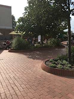 Imbissbude „Bier-Kate“ am Dorfplatz. Gute Fischbrötschen und Pommes