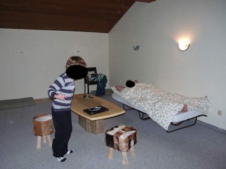 CampingklappbettIn die Wohnküche wurde ein Campingklappbett gestellt, das in der Nacht noch umgekippt ist. Schränke gab es keine.