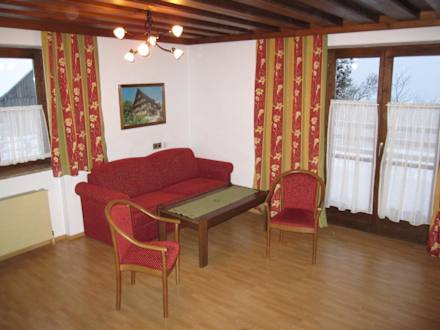 Wohnzimmer mit Ausziehcouch Ferienwohnungen Landhaus Oberlehen