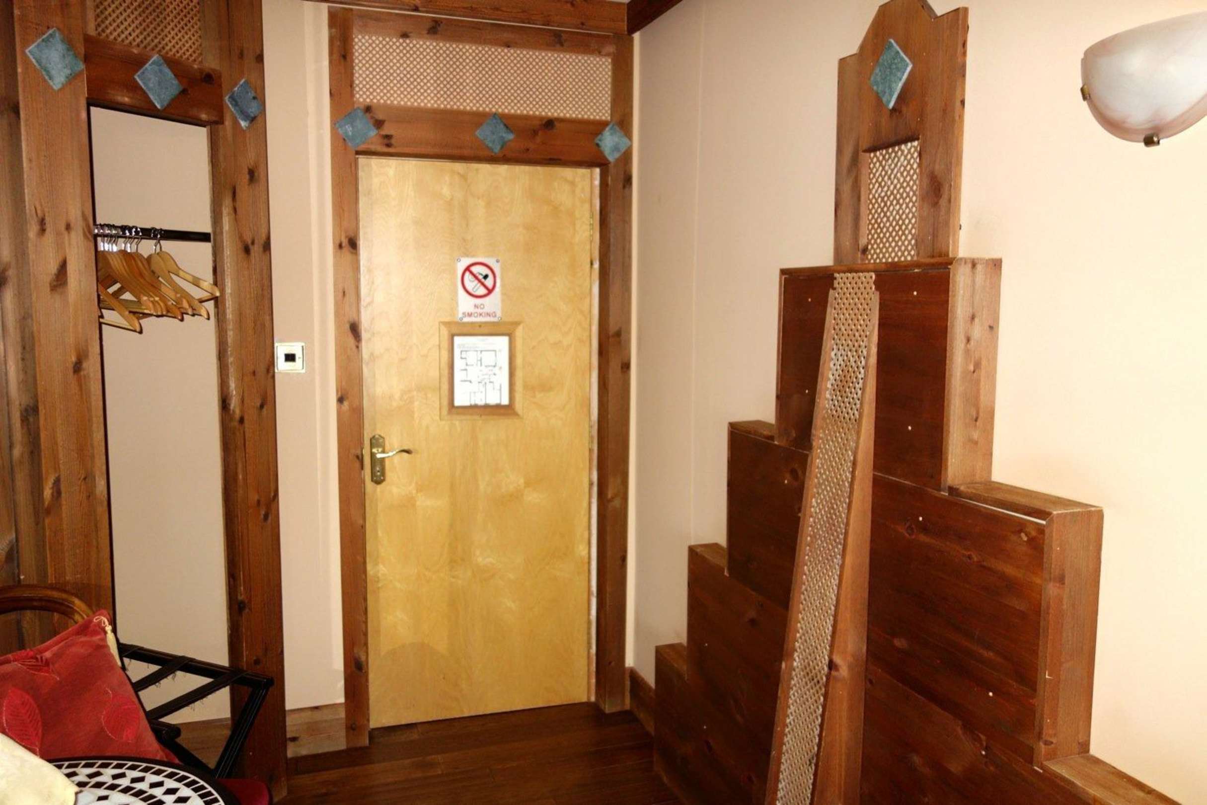 Blick zur Eingangstür mit Garderobe davor (Maya)