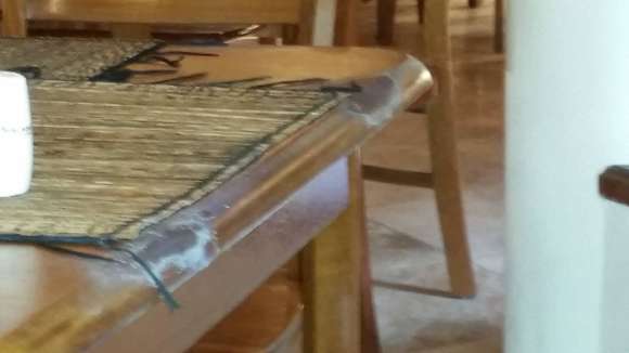 So sahen die Tische aus.Die Flecken waren Schimmel. Es würde nicht richtig geputzt, nur trocken von Krummeln gewischt
