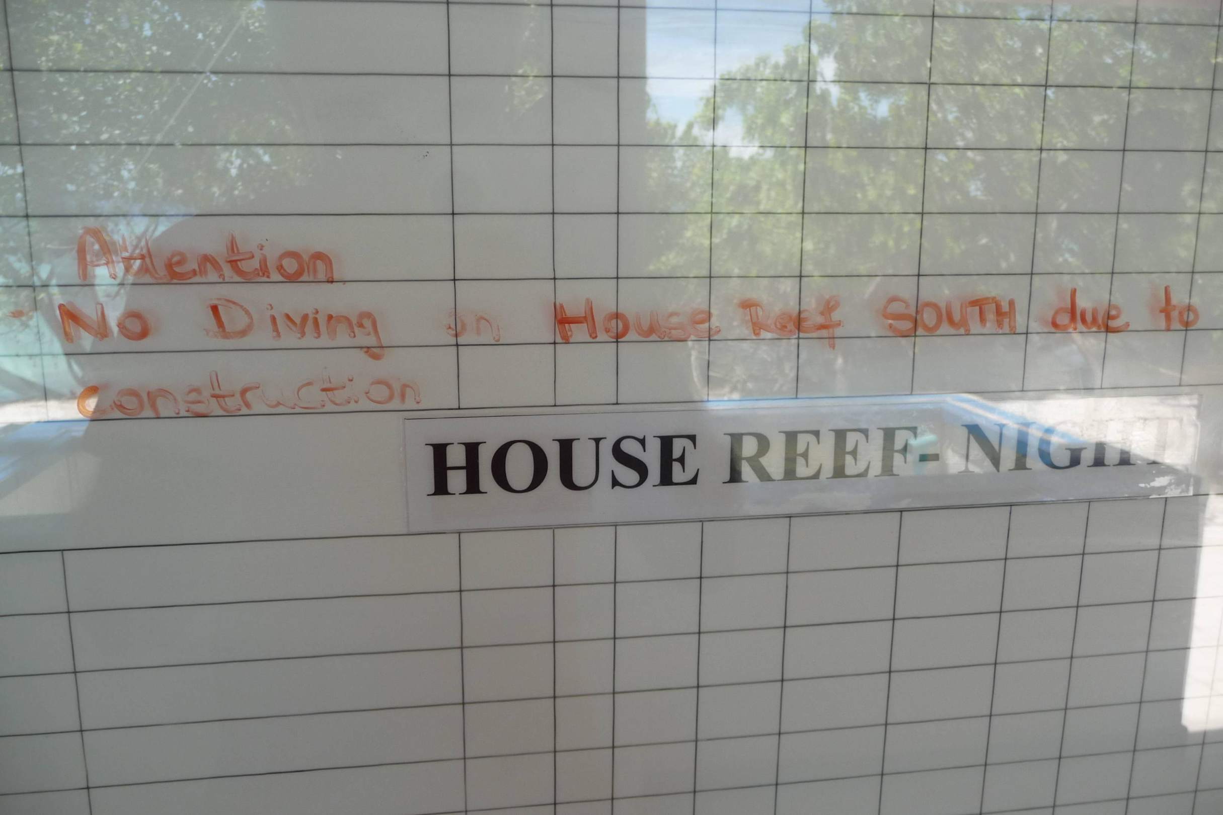 nur noch auf der Nordseite darf getaucht werden, auf der Südseite wirddurch Bautätigkeit das Riff zerstört/geschädigt und Taucher ggf. gefährdet. Damit werden die Tauchmöglichkeiten halbiert!