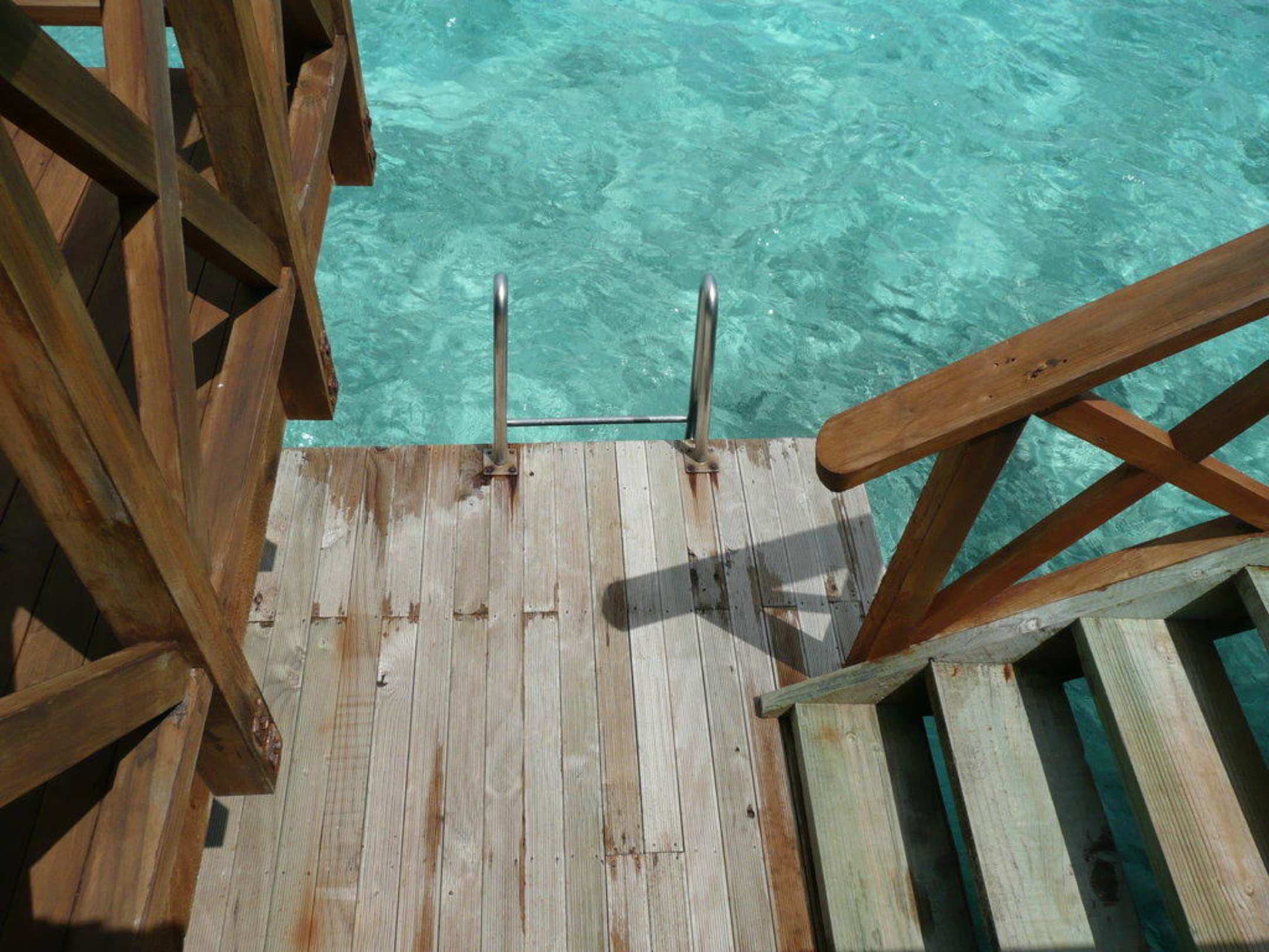 Einstieg ins Meer beim Wasserbungalow