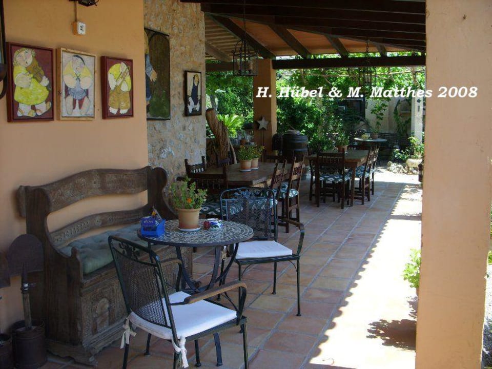 Die Gemeinschaftsterrase auf der auch Frühstück serviert wird.