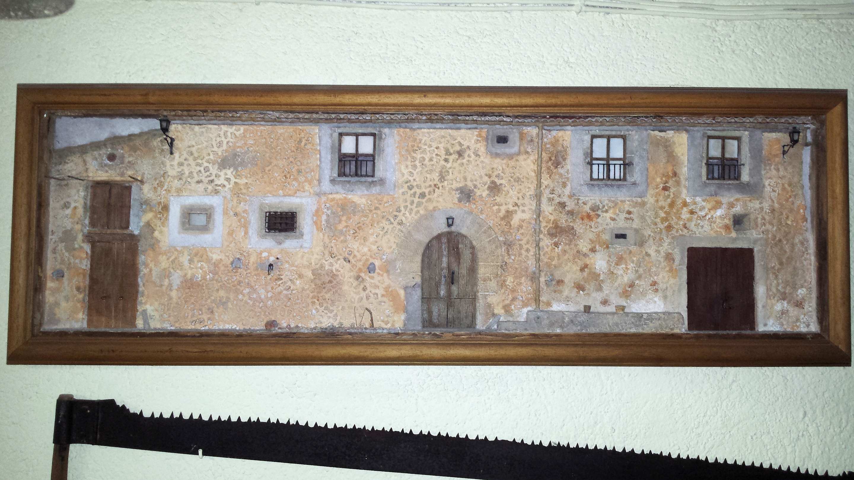 2018: Reliefbild im Frühstücksraum mit einer naturgetreuen Frontalansicht des Gästehauses.