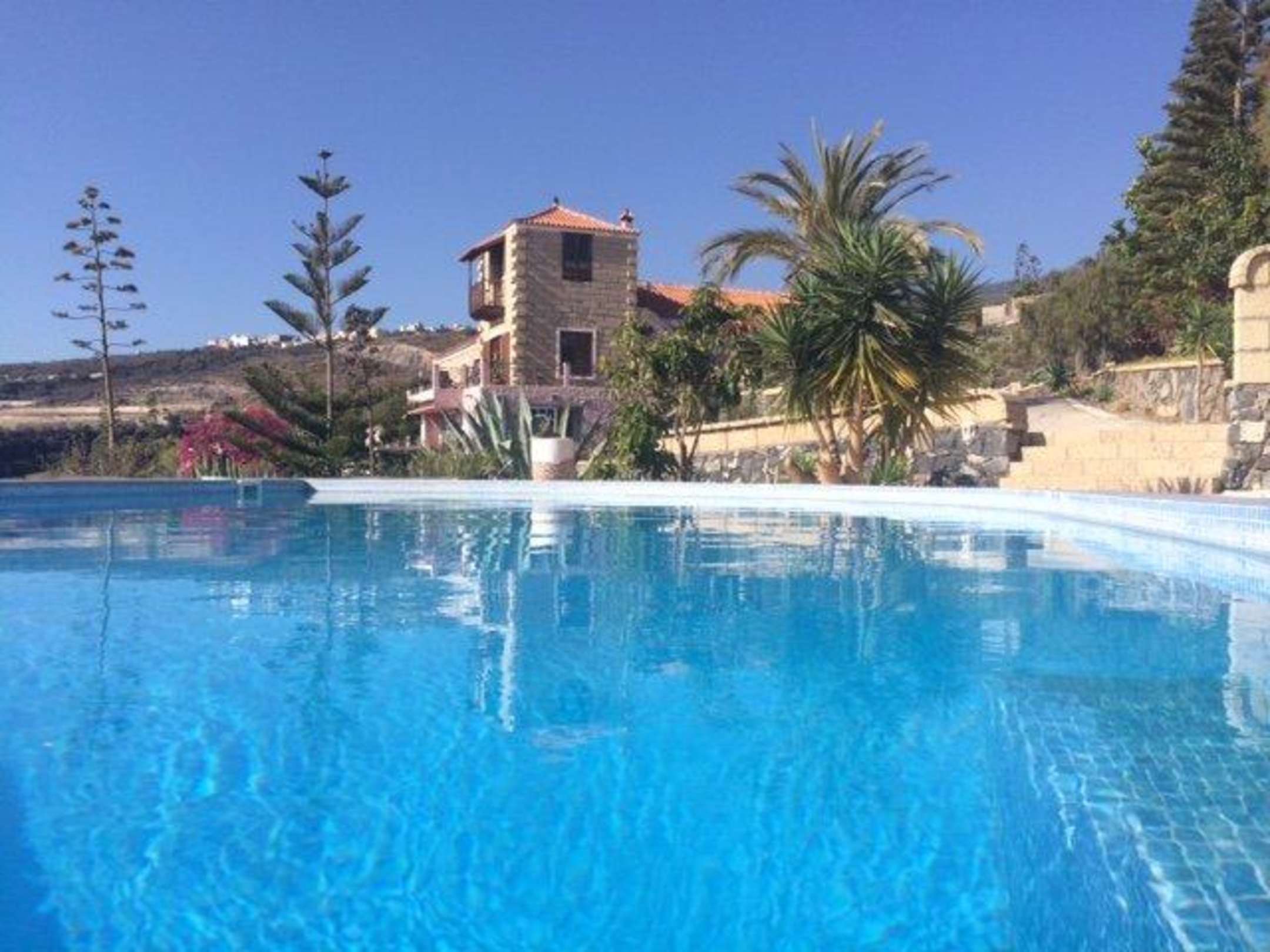 Blick vom Poolbereich auf die Finca