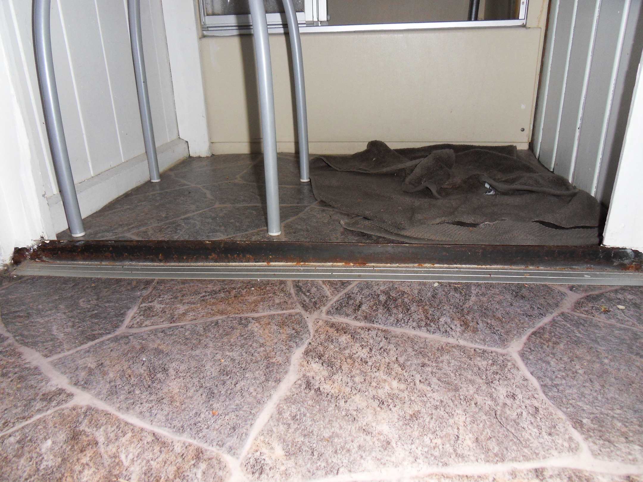Rostige metallkante zur Dusche stolpergefahr
