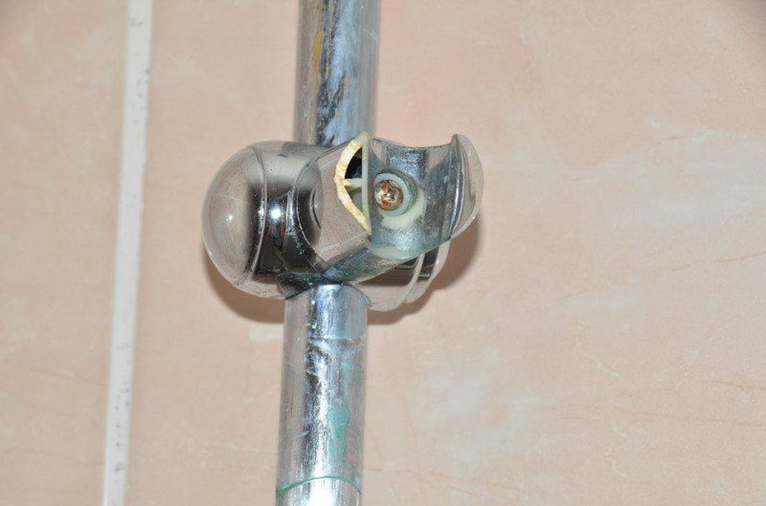 Verkeimte und kaputte Halterung von Dusche im Bad.