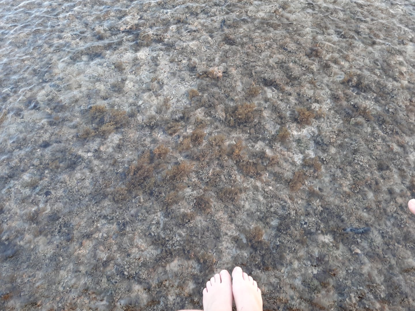 StrandUm ins tiefere Wasser zu kommen musste man über den Steg laufen. Vorne direkt am Strand ist das Wasser eher Flach mit vielen Wasserpflanzen etc. Das Wasser ist sehr klar und man kann sogar vom Steg aus Fische sehen wenn man Glück hat.