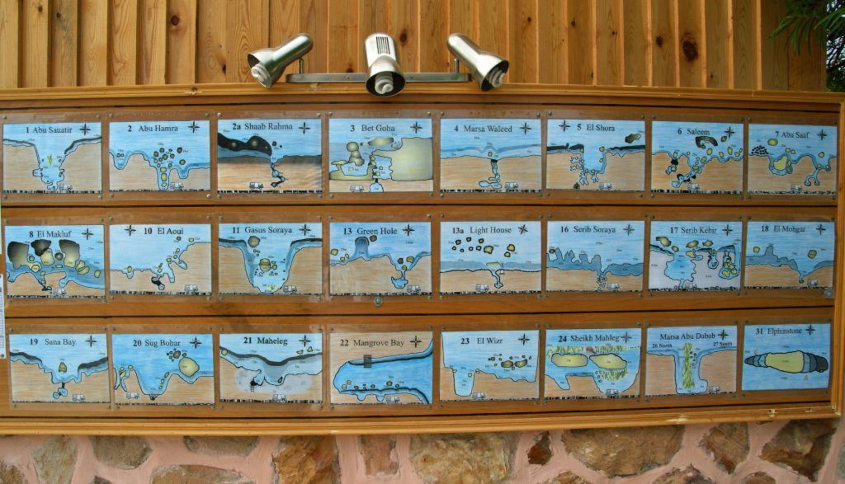 Tauchplätze um El Quseirbei diving.de hängen die Tauchplätze an einer übersichtlichen Tafel