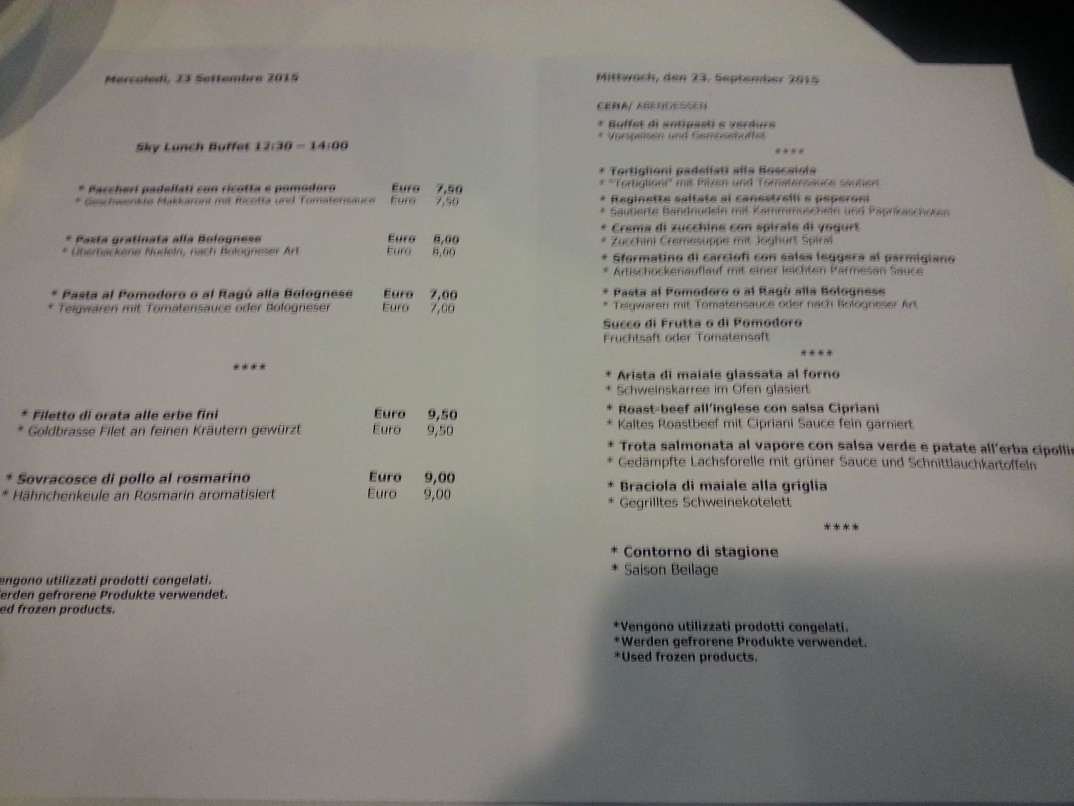 Speisekarte Abendmenü