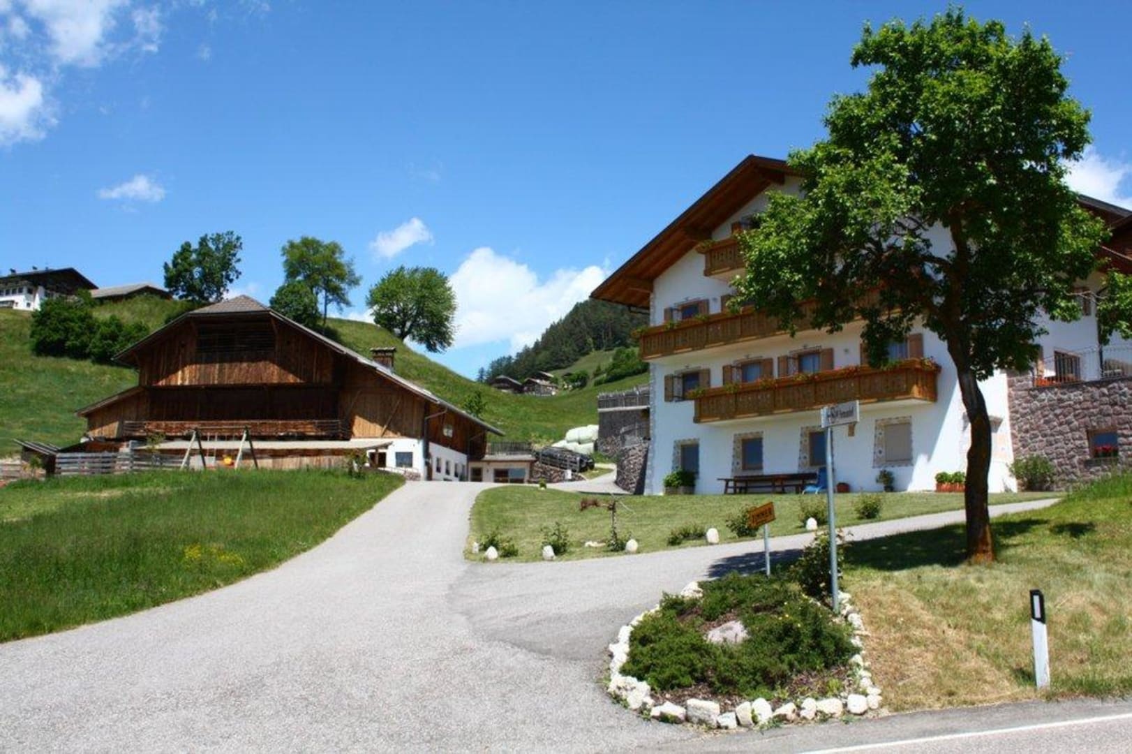Einfahrt zum Bauernhof bzw Tiefgarage und nach links zum Stall.