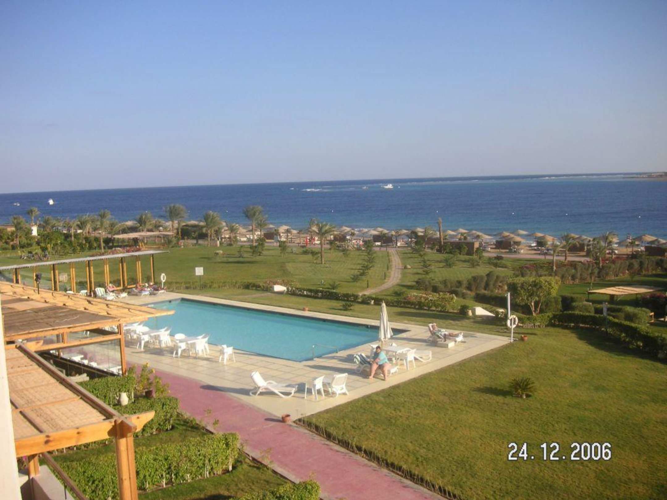 Ausicht nachmittags auf Pool StrandAufgenommen von unseren Freunden, die ein Südzimmer hatten. Am nachmittag kann man da am Balkon die warme Sonne noch länger genießen, denn am Strand wird es um diese Zeit ab 14 Uhr schon bald kühl. Herrlich gepflegte Anlage.