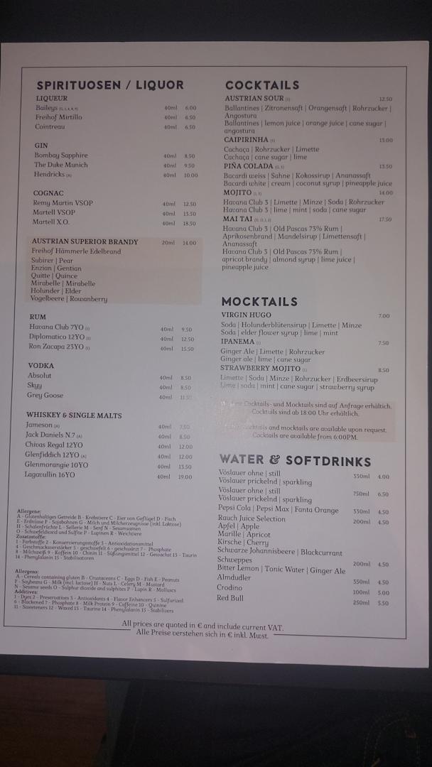 Die Getränkekarte des Restaurants. Stand: Januar 2025.