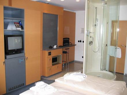 Zimmer mit Glasdusche