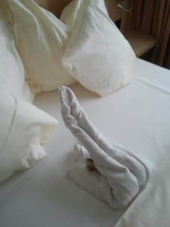 Bett mit Schwan und Schokolade