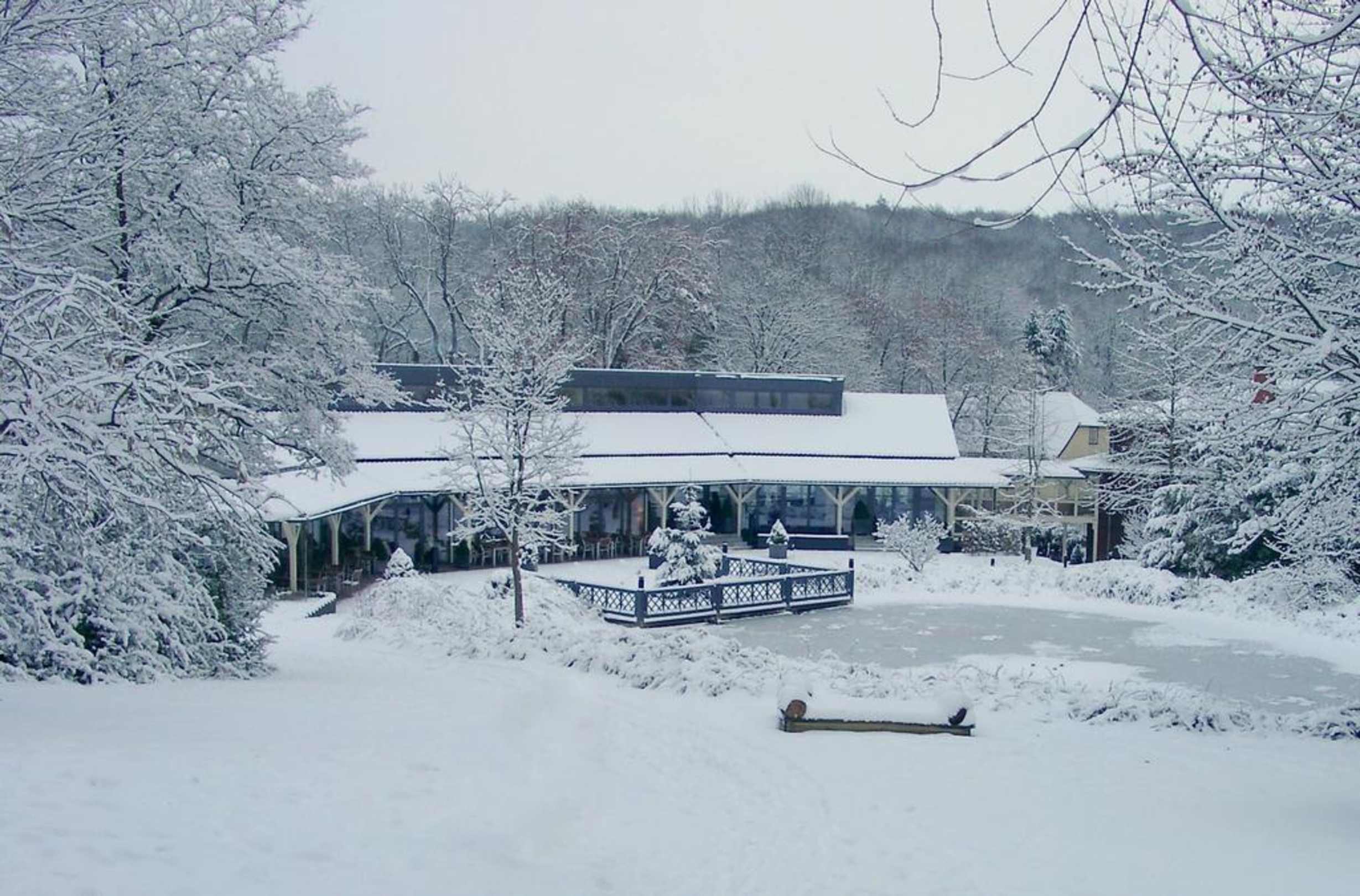 Terrasse mit verschneitem See FREIgeist Northeim