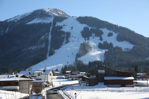 Ausblick von unserer Loggia auf das Skigebiet Hochkössen