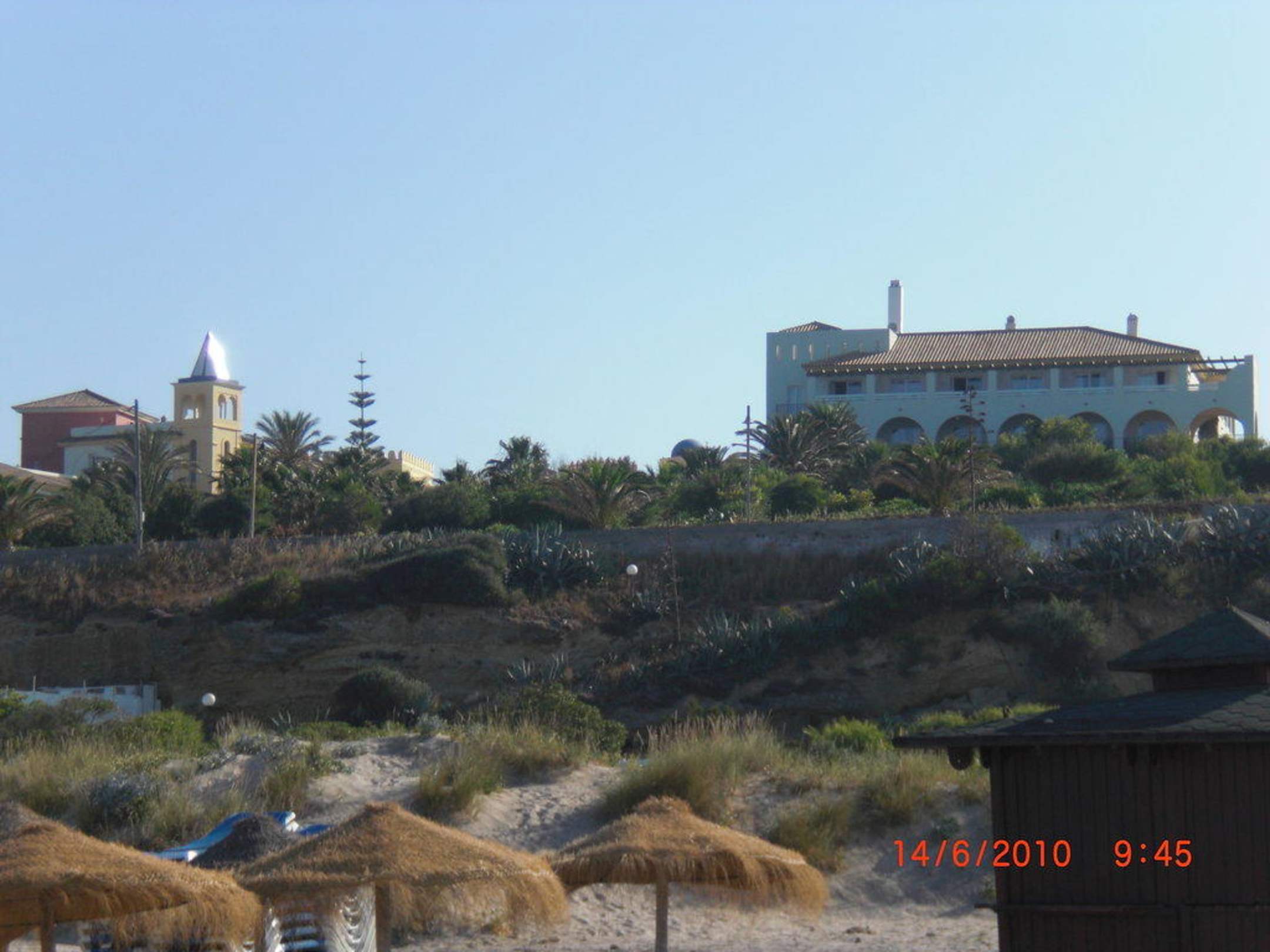 Blick vom Strand auf das Hotel