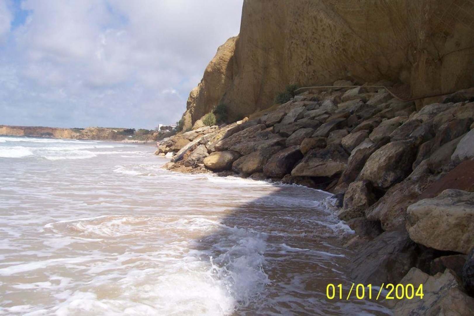 Strand Richtung Felsküste bei Flut
