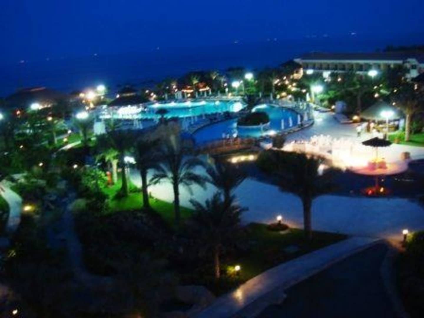 Blick auf Pool bei Nacht