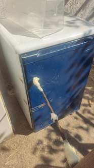 Dreckiger, kaputter Kühlschrank im Gemeinschaftsgarten...