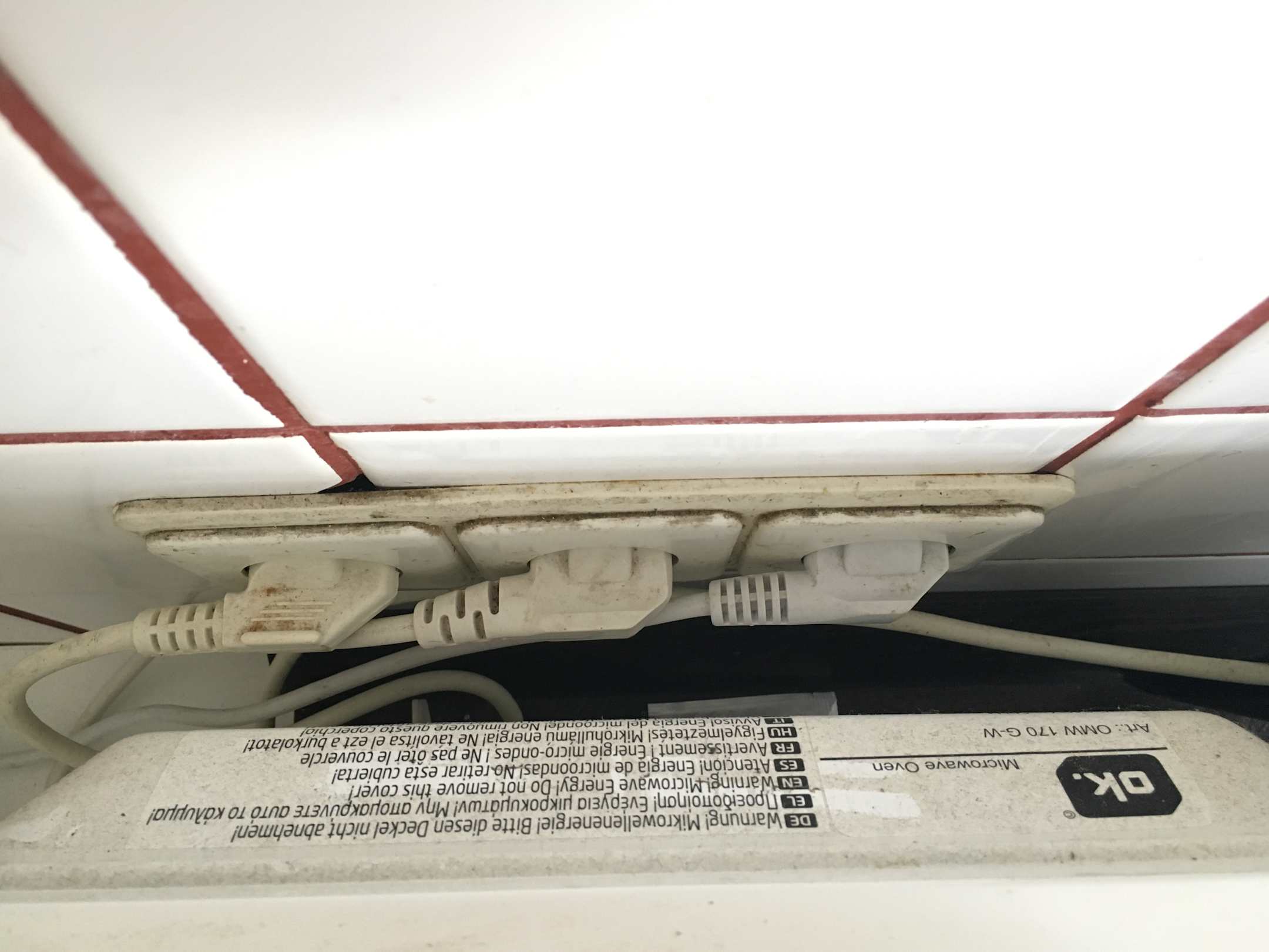 Die Küchensteckdose hinter der Mikrowelle - festgeklebter Dreck