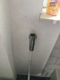 Toilette - ohne Hebel, dafür mit abenteuerlichem "Drücker", Staub- und Spinnweben zahlreich vorhanden