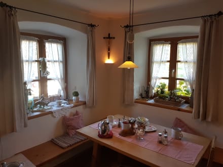 GastroDie Frühstücksstube. Total hübsch gemacht. Man fühlt sich wohl. Das Frühstück war super. Tomate Mozzarella. Rohkost. Obst. Obstsalat. Verschiedene Joghurt. Marmelade. Gekochte Eier und aufgeschnittene die lecker dekoriert waren. Lachs. Wurst u. Käse