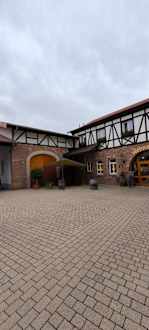 Hof mit Sitzplatz. Hier kann man gemütlich ein Glas Wein 🍷 genießen.