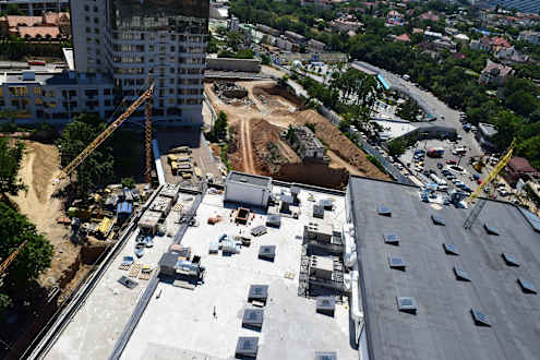 Blick auf die Baustelle vor dem Hotel