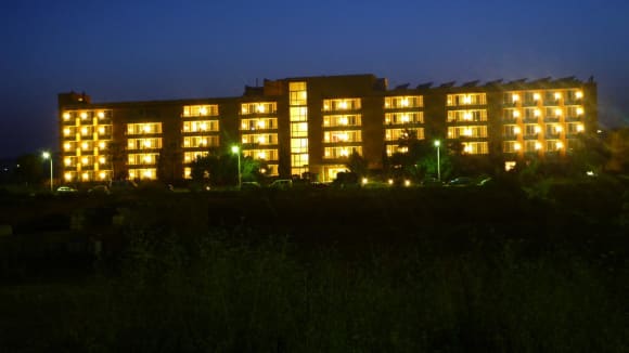 Das Hotel Garbi in der Abenddämmerung.
