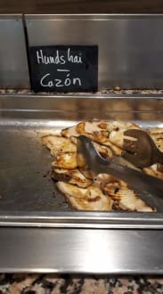 Leckerđ, zum ersten Mal gegrillten Hundshai probiert