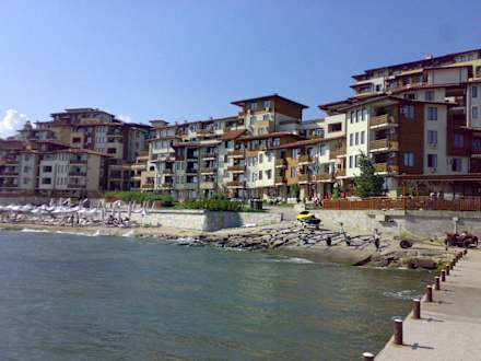 Blick vom Strand auf die Anlage