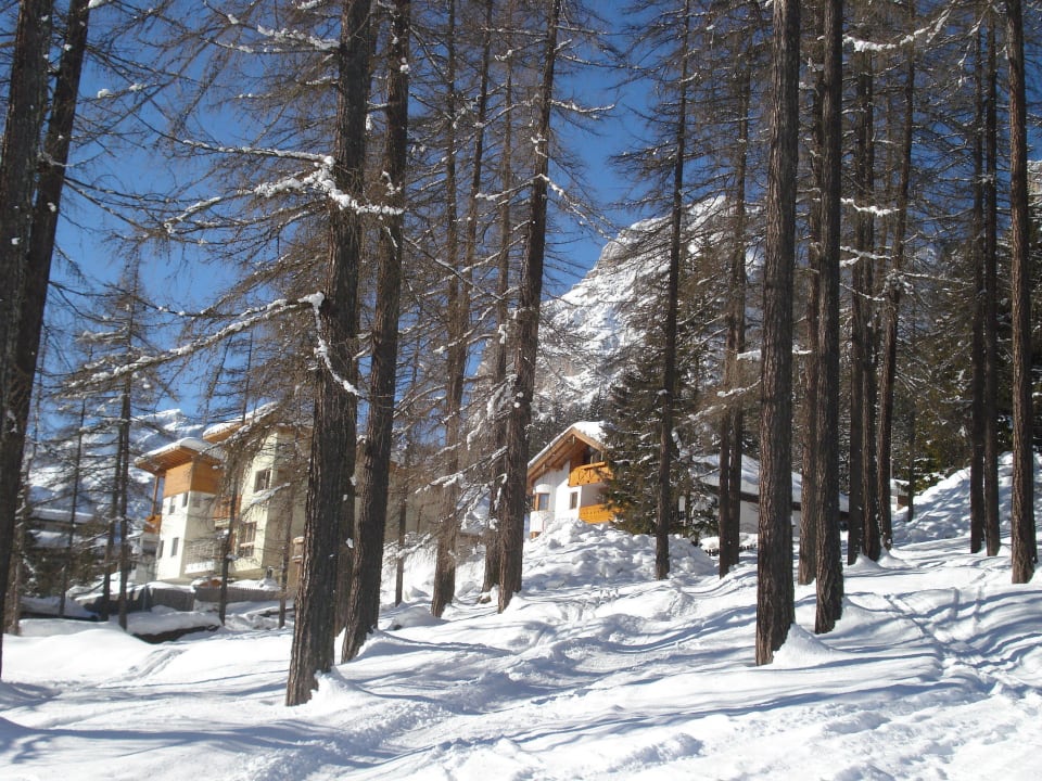 Blick von der Skipiste zum Haus