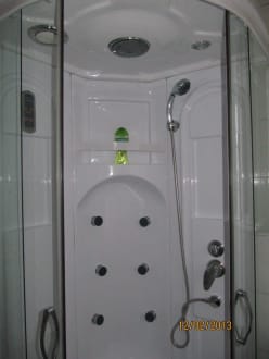 Im Bad war eine Duschkabine mit Massage Düsen und einer Handdusche beides funktionierte nicht nur von Oben kam Wasser ..... naja zumindest ging das Licht in der Dusche.
