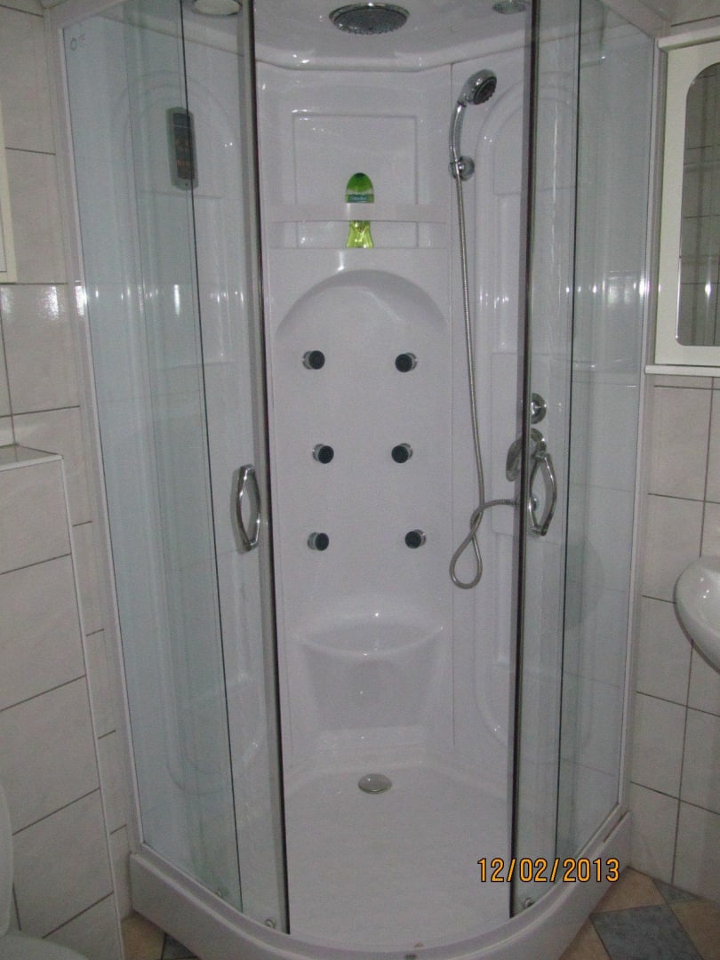 Im Bad war eine Duschkabine mit Massage Düsen und einer Handdusche beides funktionierte nicht nur von Oben kam Wasser ..... naja zumindest ging das Licht in der Dusche.