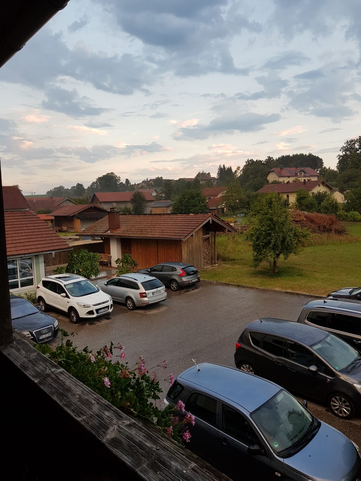 Blick hinten hinaus auf den Hinterhof/Parkplatz